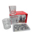 Praktiška dovana tiems, kurie mėgsta patys gamintis kokteilius. Komplekte yra  pagrindiniai barmeno įrankiai, metaliniai ledo kubeliai ir 2 viskio taurės.